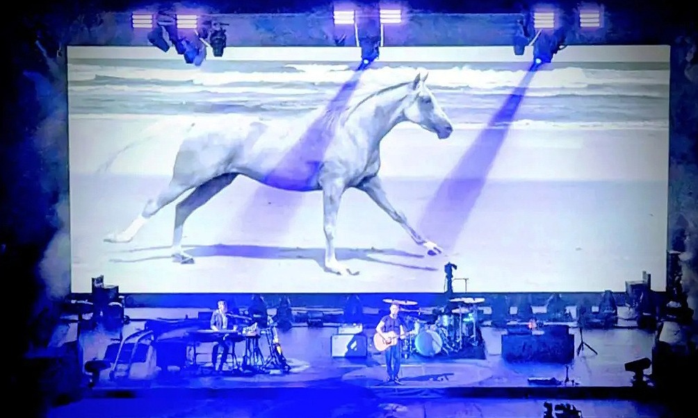 J’ai vraiment aimé le visuel, surtout les écrans qui sont utilisés à différentes sauces. Parfois comme écran géant pour y montrer le groupe ou les spectateurs qui dansent, parfois pour faire jouer un vidéoclip ou des petits films. Mon préféré était celui avec le cheval qui court, c’était très zen à regarder. On a eu aussi droit à une voiture et un gant de boxe géants volants! Il y avait de très bons musiciens qui l’accompagnait dont un qui est avec lui depuis très longtemps, Keith Scott. Ça sonnait incroyablement bien, tellement bien que pendant la première chanson, je me demandais s’il faisait du lipsync.
