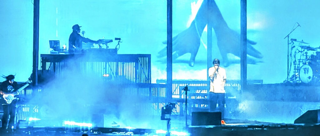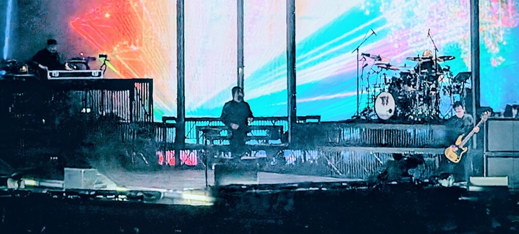 Le spectacle de Vancouver affichait complet et il était au Rogers Arena. J’ai préféré les voir dans un aréna qu’à l’extérieur comme à Milan, mais ça été quand même une belle expérience à vivre. On voit mieux dans un aréna, il y avait de beaux visuels animés à l’arrière avec deux panneaux en haut de la scène équipés de barres d’éclairage qui se fondaient bien au décor.