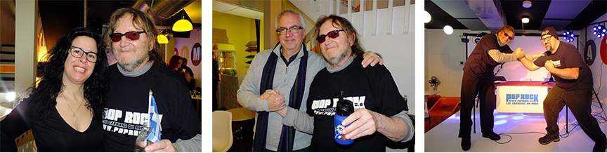 Mononc’Serge a accepté de se faire photographier avec nous tous et il est resté à discuter avec les clients présents de l’Atomic Café et surtout avec son ami de longue date, l’ex-batteur des Colocs, Jimmy Bourgoing, ils ne s’étaient pas vus depuis 18 ans!