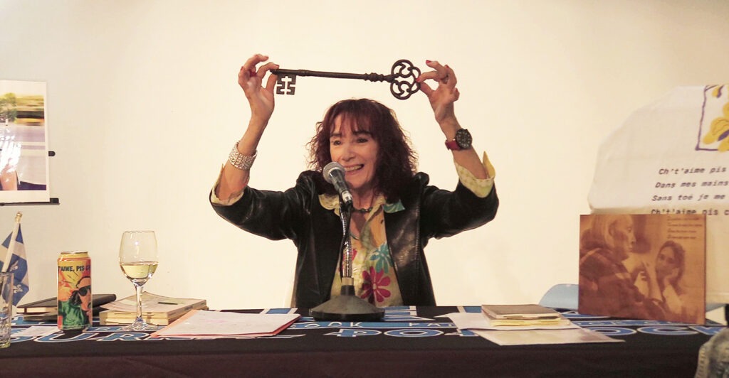 En fin de soirée, c’est au tour de Claudine Bertrand de prendre le micro. Clo la gitane, comme Lucien a nommé un de ses recueuils en son honneur.