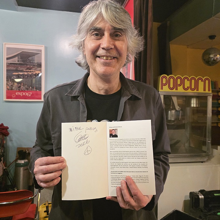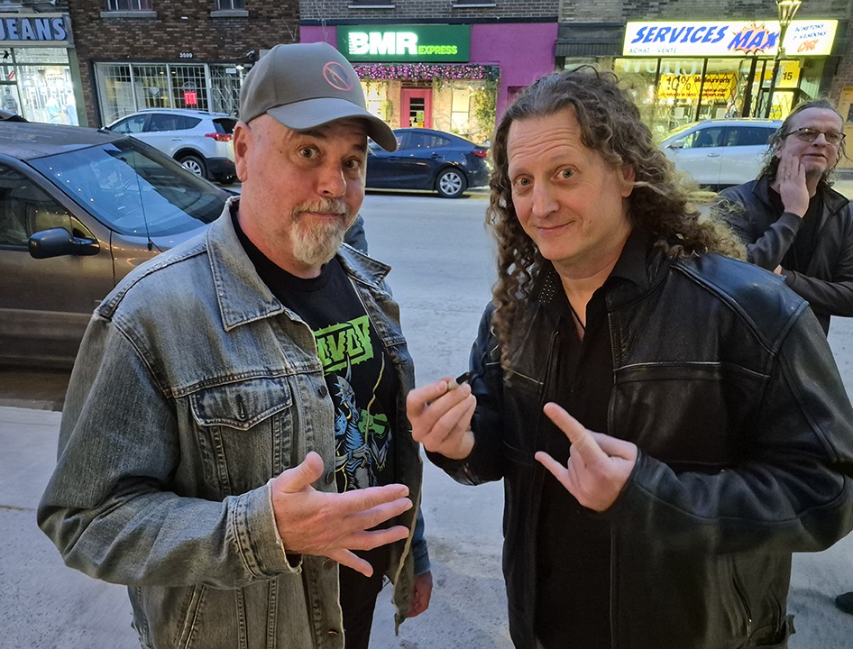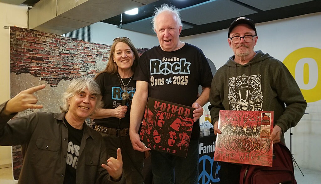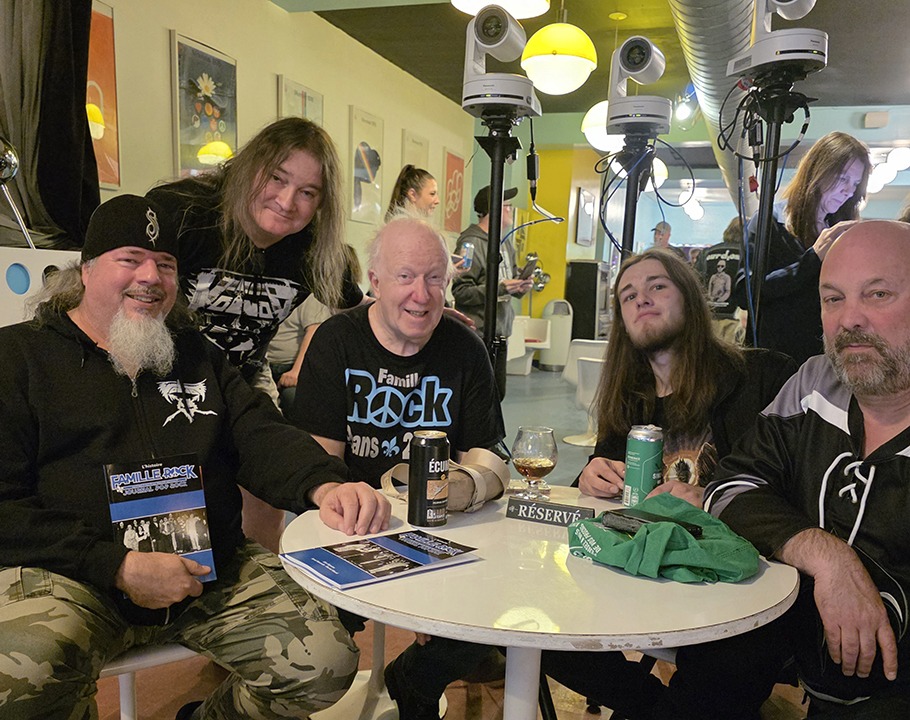 – Merci Voivod pour votre immense générosité et prix de présence offerts. Rocky a fait un détour pour passer à leur local récupérer la marchandise. Je voudrais remercier personnellement Michel Langevin, grâce à lui, les 3 autres ont accepté. Une soirée mémorable, épique! Confidence après l’entrevue, Michel Langevin me raconta que notre magnifique t-shirt vintage Pop Rock figurait sur le démo qu’ils ont envoyé à l’Orchestre symphonique!
