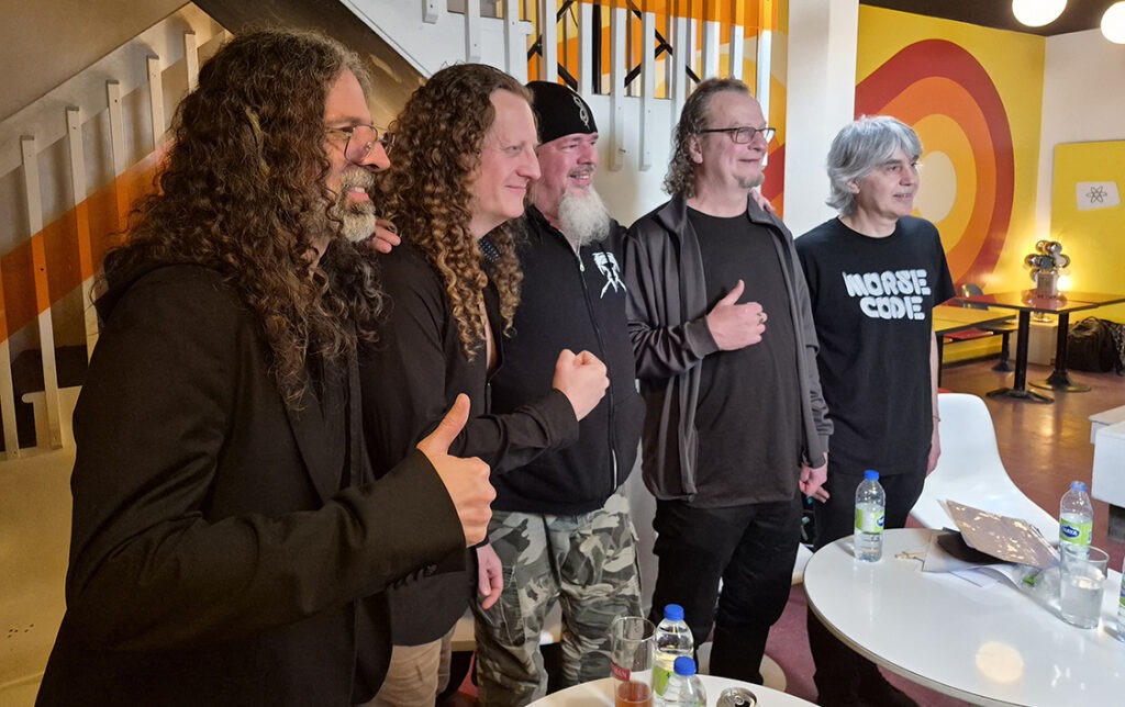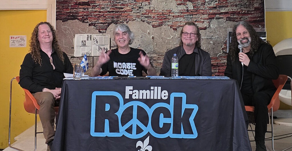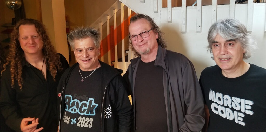 Nous avons filmé 2 entrevues. La première réunissait la formation au complet, Michel Langevin, Denis Bélanger, Daniel Mongrain et Dominic Laroche. Presque 40 minutes, en terminant avec l’historique et les plans d’avenir de chacun. Daniel a même dit à ses amis une anecdote qu’il ne leur avait jamais raconté!! Rocky devait partir plus tôt parce qu’il jouait au Bistro à Jojo avec Mario Caliari.
