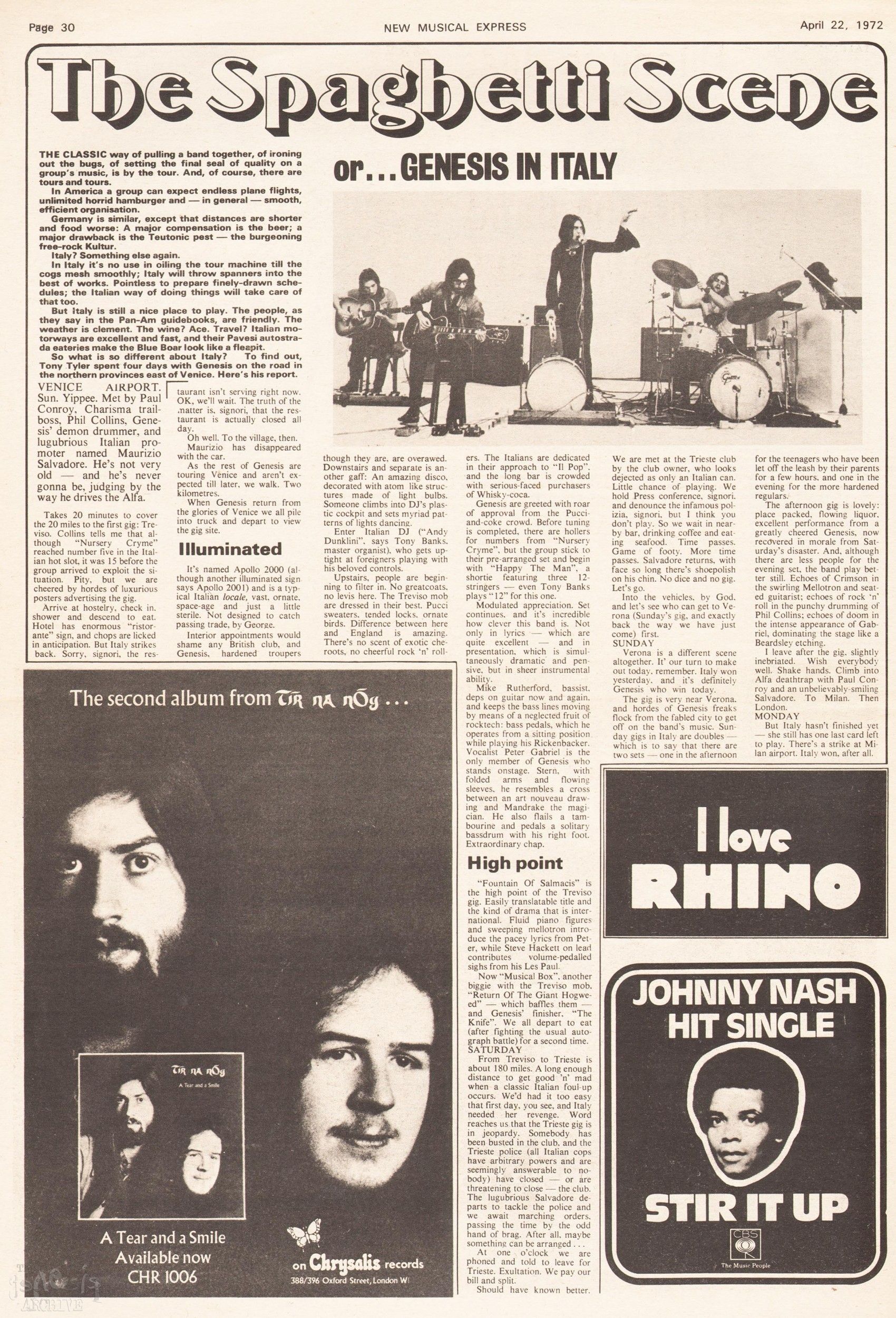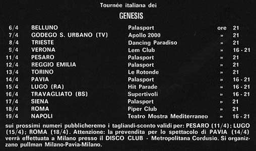Les attentes étaient très élevées quand ils y sont allés, tellement qu’ils ont accepté que Charisma invite le journaliste Tony Tyler du magazine NME à les suivre en tournée pendant quelques jours pour constater que les Italiens étaient les premiers à offrir à Genesis un statut de superstar.