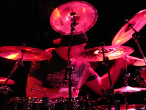 Anecdote 118 – Virgil Donati (Planet X, Allan Holdsworth, Steve Vai) ici avec le groupe UK au Gésu à Montreal le 27 avril 2013. J’ai eu aussi la chance de le revoir chez Italmelodie pour une clinique. Merci à ce cher Daniel Lagueux pour cette photo.