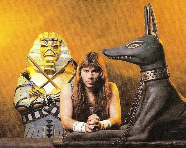 Le thème égyptien a également inspiré l’illustrateur Derek Riggs pour concevoir la mémorable pochette de l’album Powerslave, tandis que le spectacle sur scène de la tournée qui a suivi comportait des sarcophages, de nombreux effets pyrotechniques et même une version momifiée de 30 pieds de la célèbre mascotte d’Iron Maiden, Eddie.