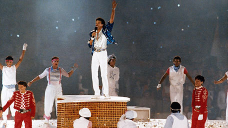 1984 – Lionel Richie a célébré la cérémonie de clôture des jeux olympiques de Los Angeles en interprétant son succès numéro un au palmarès, All Night Long. On estime que 2,6 milliards de téléspectateurs à travers le monde ont regardé cette performance.