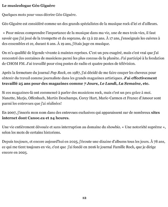 Grâce à Charles Mongeon, qui nous a écrit tout le discours que Géo avait fait lors de ses 77 ans à l’Atomic Café, nous sommes partis de là. Géo nous racontait aussi lors de nos rencontres, les histoires un peu plus détaillées. Mais on ne pouvait tout mettre dans un tout petit livre. Mais l’essentiel est là.
