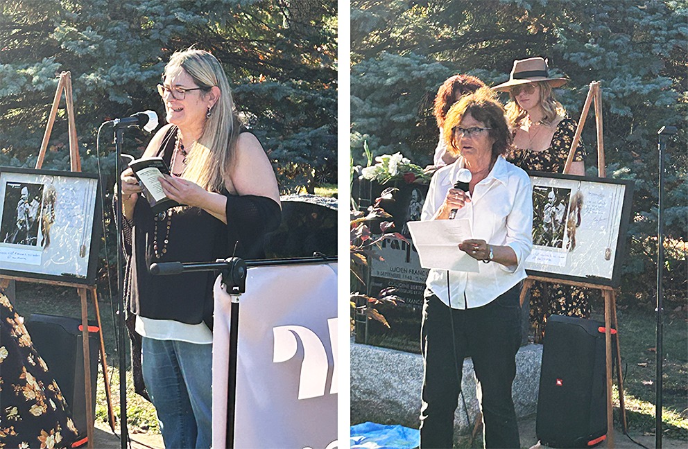 Claudine et Virginie se partagent le rôle de maître de cérémonie: elles offrent des souvenirs intimes et lisent toutes deux des poèmes. Claudine avoue qu’elle entend parfois cogner Lucien à la porte, mais qu’elle n’ouvre pas la porte de peur que ce soit un inconnu. (Lucien ne les a jamais quitté, elle avoue.)