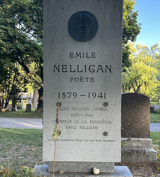 Quelques-uns de nous retrouvent la pierre tombale de Émile Nelligan, ce poète tant apprécié de Lucien (et dont son nom apparaît au titre d’une des pièces à un album solo de Lucien des années 80).