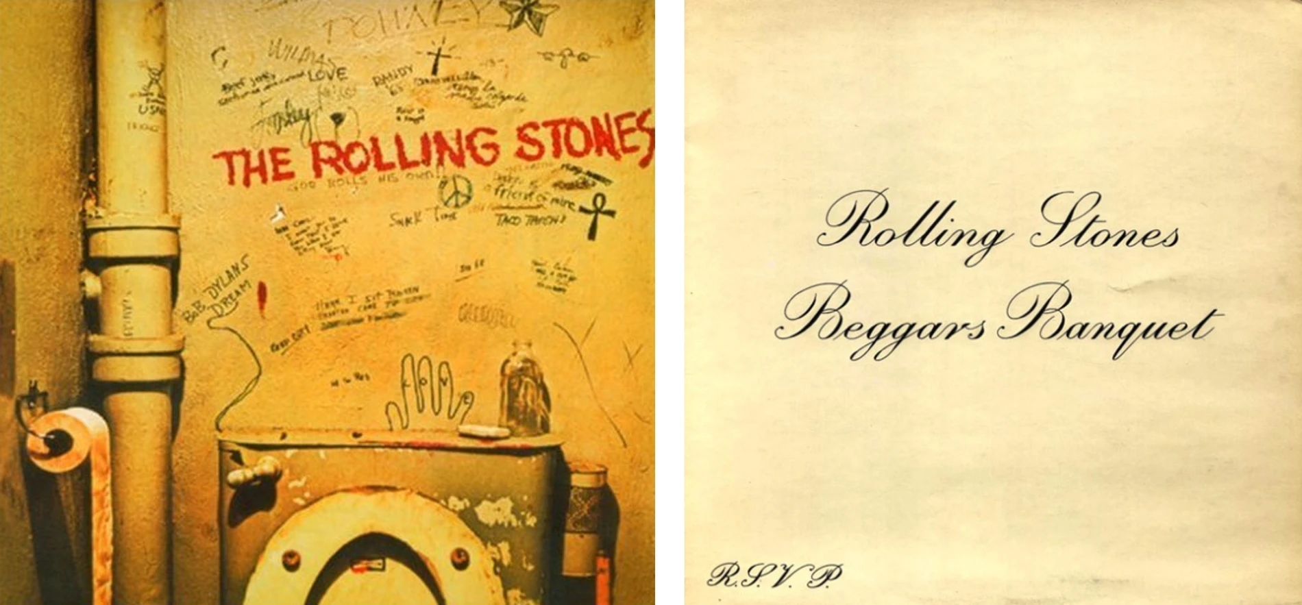 Deux pochettes différentes existent pour l’album. Au moment de la sortie du disque, Decca, la maison de disques, refuse la photo proposée par les Stones qui représente des toilettes publiques aux murs couverts de graffitis. Les négociations n’aboutissent pas, retardant la sortie de l’album de deux mois et finalement, les Stones parviennent à un compromis avec Decca en proposant une pochette représentant un carton d’invitation très simple, proposant un « banquet de mendiant » suivi de la mention « RSVP » (« Répondez, s’il vous plaît » emprunt au français). C’est lors de la réédition en CD que la photo des toilettes publiques fait pour la première fois son apparition.