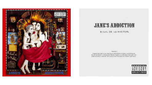 La seconde pochette, dite « blanche », ne comporte que du texte noir sur fond blanc, avec le nom du groupe, le titre de l’album et le texte du Premier Amendement (l’amendement sur la « liberté d’expression », souvent appelé à tort « Article 1 », qui établit en réalité le pouvoir législatif) de la Constitution américaine .