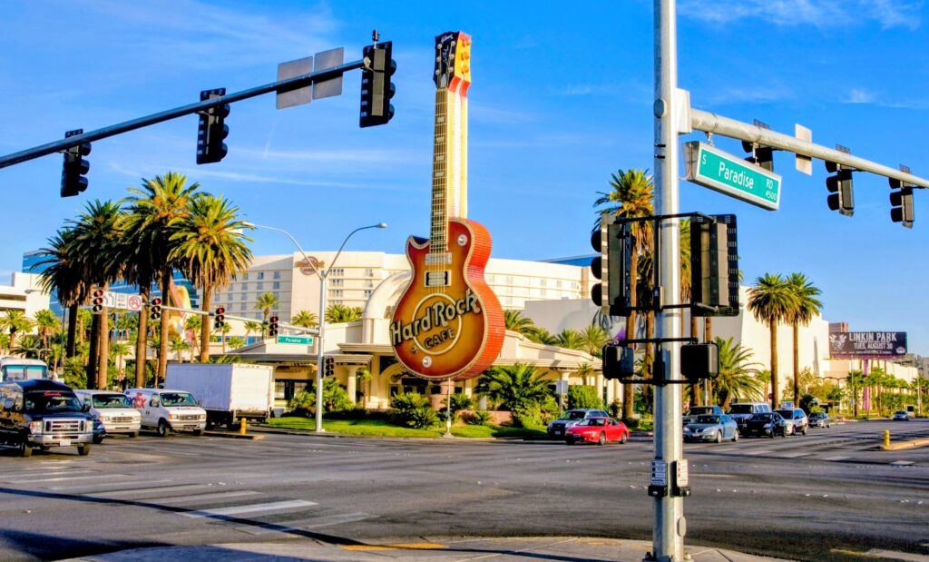 Le rock aura bientôt plus de visibilité sur le Las Vegas Boulevard avec la construction de l’hôtel Hard Rock qui inclura une guitare géante au centre de la strip. Ce sera une belle façon de célébrer sa présence dans la ville du vice depuis l’époque d’Elvis Presley et du Rat Pack. Un temps où la mafia avait une main mise sur elle.