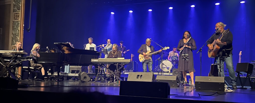 Fauteux et Valois arrivent sur scène et s’joutent à l’ensemble presque complet. (Il serait difficile d’avoir deux bassistes à jouer en même temps). Je m’attendais à deux pièces? Trois pièces? Commence Histoires sans paroles de l’album Les cinq saisons, avec Marianne qui joue la flûte traversière en duo avec Subirana.