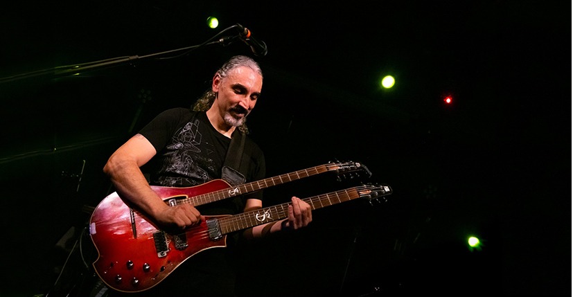 L’un des éléments les plus marquants de sa carrière solo est la création d’un instrument hybride qu’il appelle la bouzoukitara. Il s’agit d’une combinaison entre une guitare électrique et un bouzouki, instrument à cordes grec. Cet instrument lui permet de passer en une fraction de seconde d’un son typiquement rock à une sonorité orientale délicate, sans changer d’instrument sur scène. Cela représente à la fois une innovation technique et l’illustration parfaite de sa philosophie musicale : un dialogue permanent entre Orient et Occident.